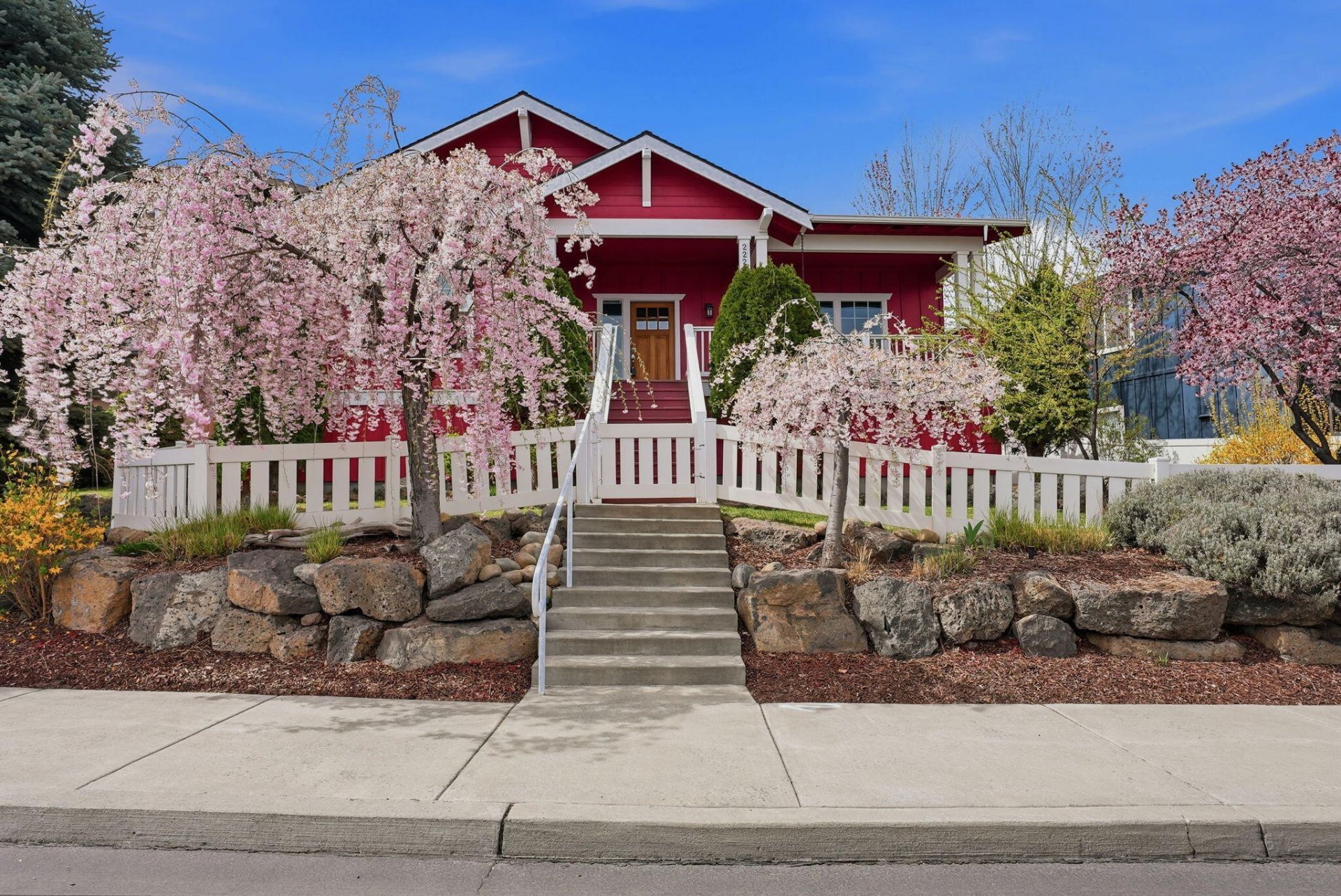 Set in a convenient pocket of Redmond, a short stroll from Hayden Park, this single-level home blends character with easy living. The striking front entry, framed by blooming forsythia, plum, and cherry blossom trees, makes a statement. Step-free access from the driveway and two-car garage keeps everyday life effortless. Inside, the vaulted great room features an exposed beam, cedar tongue-and-groove ceiling, updated LVP flooring, fresh paint, and new ceiling fans, creating a warm yet modern feel. The primary suite offers a relaxing escape with a soaking tub and walk-in closet. Out back, enjoy a private deck and low-maintenance yard and gorgeous Ochoco Mountain views from the front deck. W/ three driveway spaces and an updated garage door opener, theres room for everyone. Perfectly positioned for everyday ease, youre within a 10-minute drive of downtown Redmond, plus nearby shopping, dining, and groceries, and just 20 minutes from Bend. This rare charmer is ready to welcome you home.